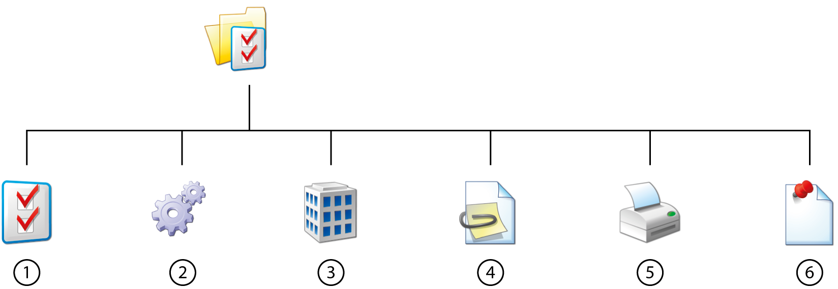 To a machine or work center, documents (4) can be added, and if required the machine or the work center can be added to a department (3).
