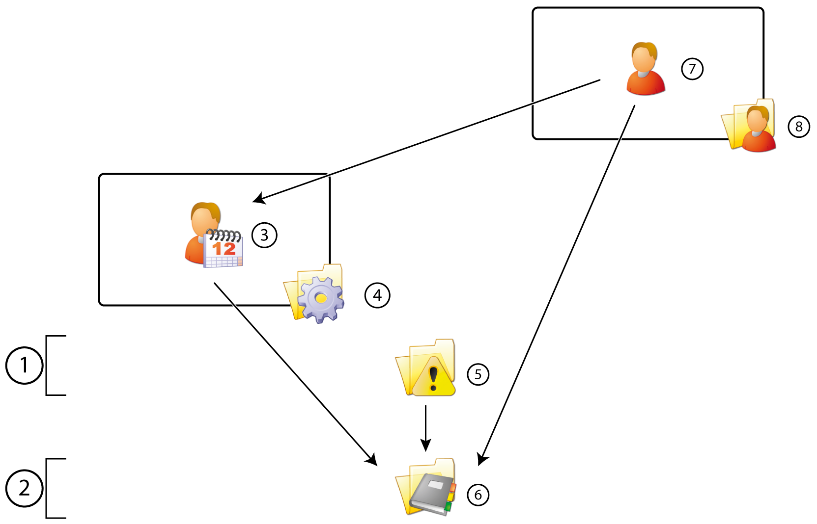 The configuration sequence is displayed in the figure below. First configure the Employees (7) and then the Planning Cells (3).
