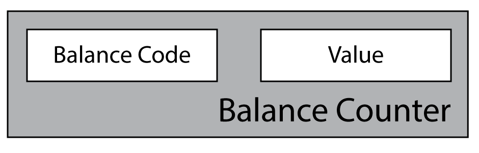 A balance counter consists of a balance code and a value.