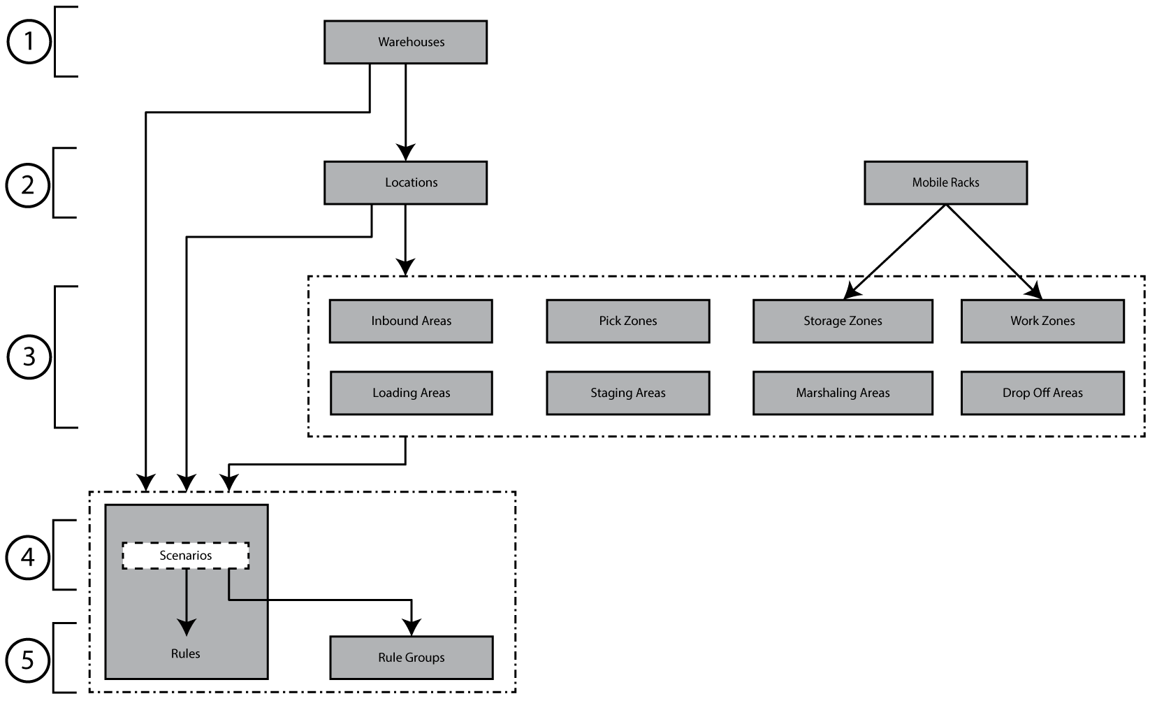 Configuration Configure all other elements of the node Warehouse Management first and configure the rules last! Figure: Configuration sequence rules Putaway / Relocation rules Pick / Replenishment rules Crossdock rules Add a filter to a WMS rule Edit a rule Rule Groups