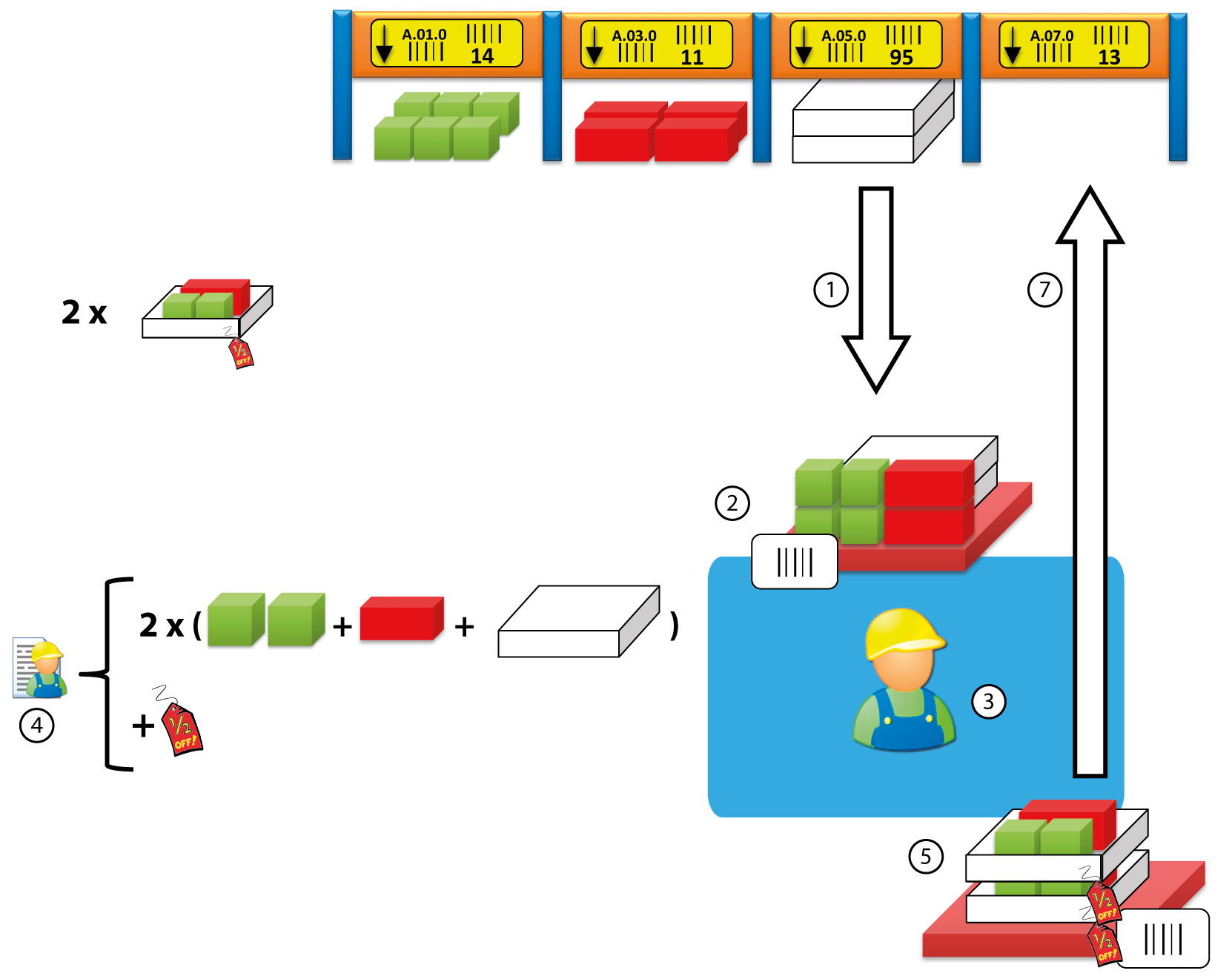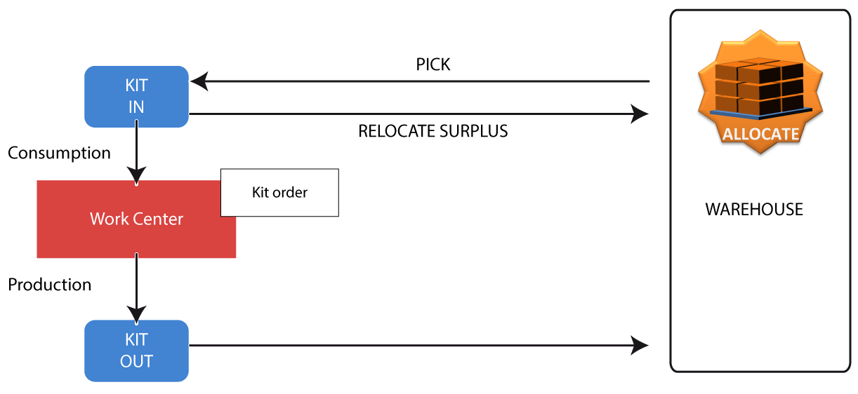 Items can be composed for storage in the warehouse.Figure: Production flow Kit-to-stock operation